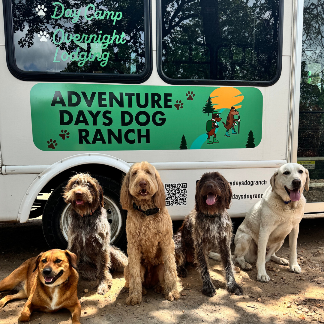 We do things a little differently for day camp. Our doggy day camp is set up to provide the utmost convenience and stress-free experience. We will pick up and drop off your dog on our dog bus; I’m sure you’ve seen us driving around or on social media. You don’t have to do anything! You don’t even have to be home.